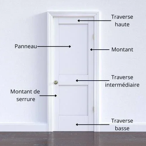 Éléments de l'ouvrant : Panneaux, Montants, Traverses.
